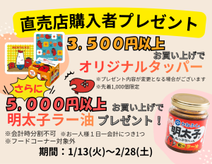 5,000円以上お買い上げで明太子ラー油プレゼントピヨ💕
